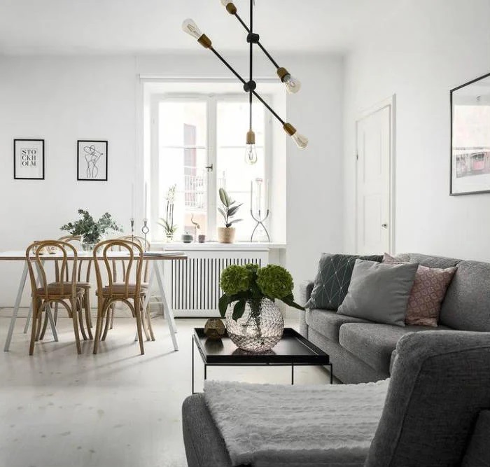 Στις Σκανδιναβικές χώρες λατρεύουν το φυσικό φως -κυρίως λόγω της έλλειψης του- οπότε η μεγάλη χρήση του λευκού στα σαλόνια βοηθάει να το αξιοποιήσουν στο έπακρο. Έτσι το λευκό κυριαρχεί στα Σκανδιναβικά σαλόνια και γενικά σε όλα τα σκανδιναβικά δωμάτια. Οι πινελιές πράσινου από τα φυτά εσωτερικού χώρου φέρνουν το έξω μέσα!